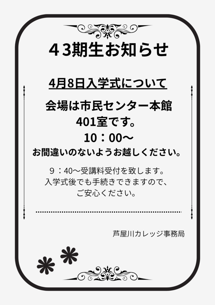 43期カレッジは定員に達したため締め切りました。(3月11日)