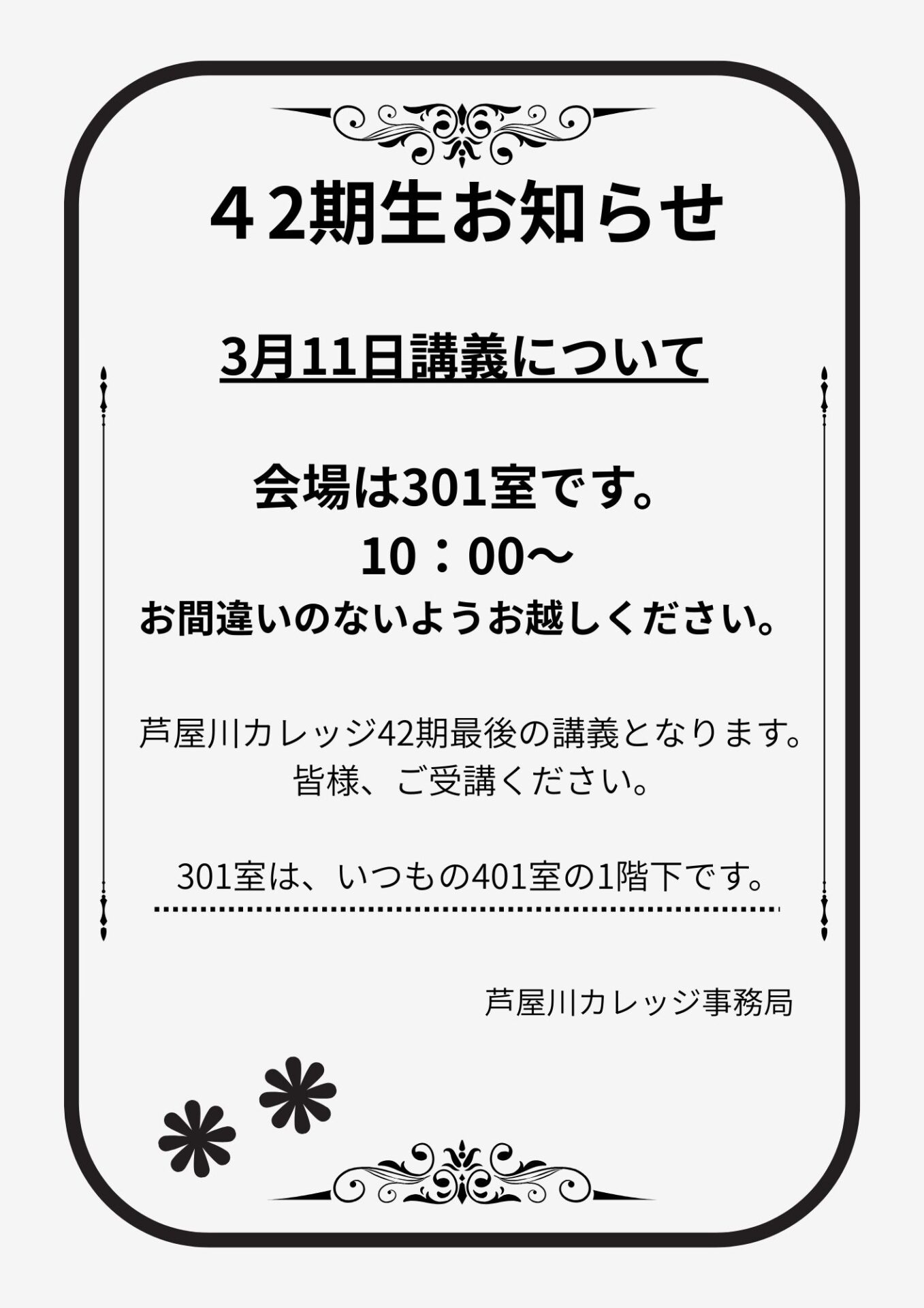 芦屋川カレッジ 43期お申込みは