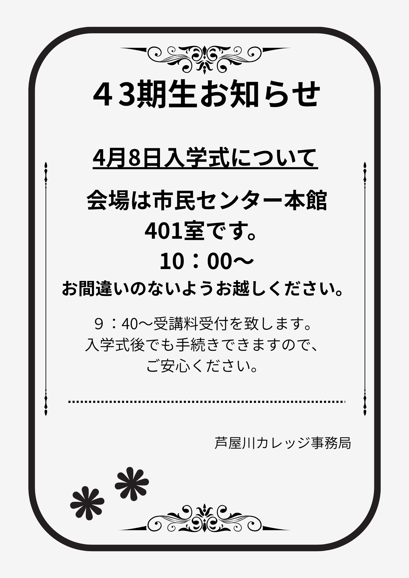 カレッジ43期生 最新のお知らせコーナー