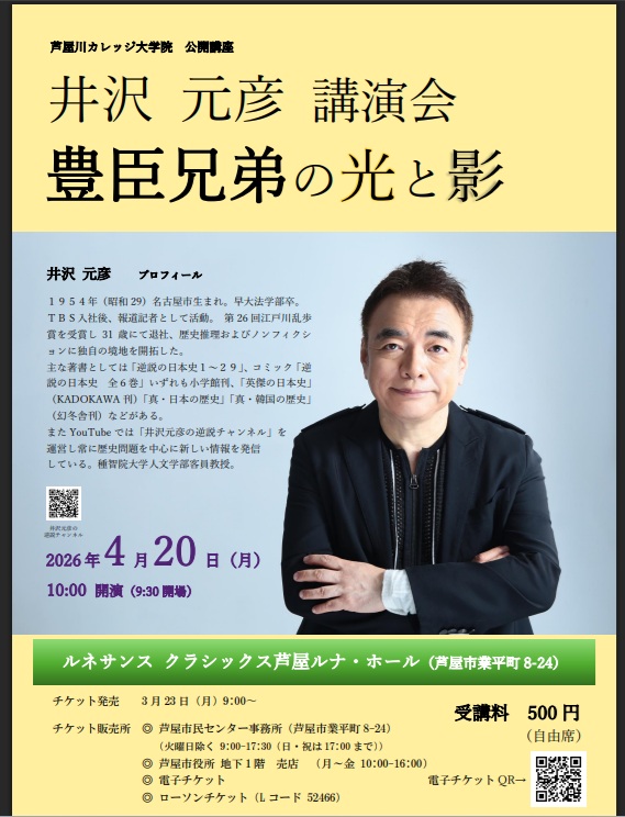 井沢元彦講演会 豊臣兄弟の光と影 2026年4月20日(月)午前10時開演