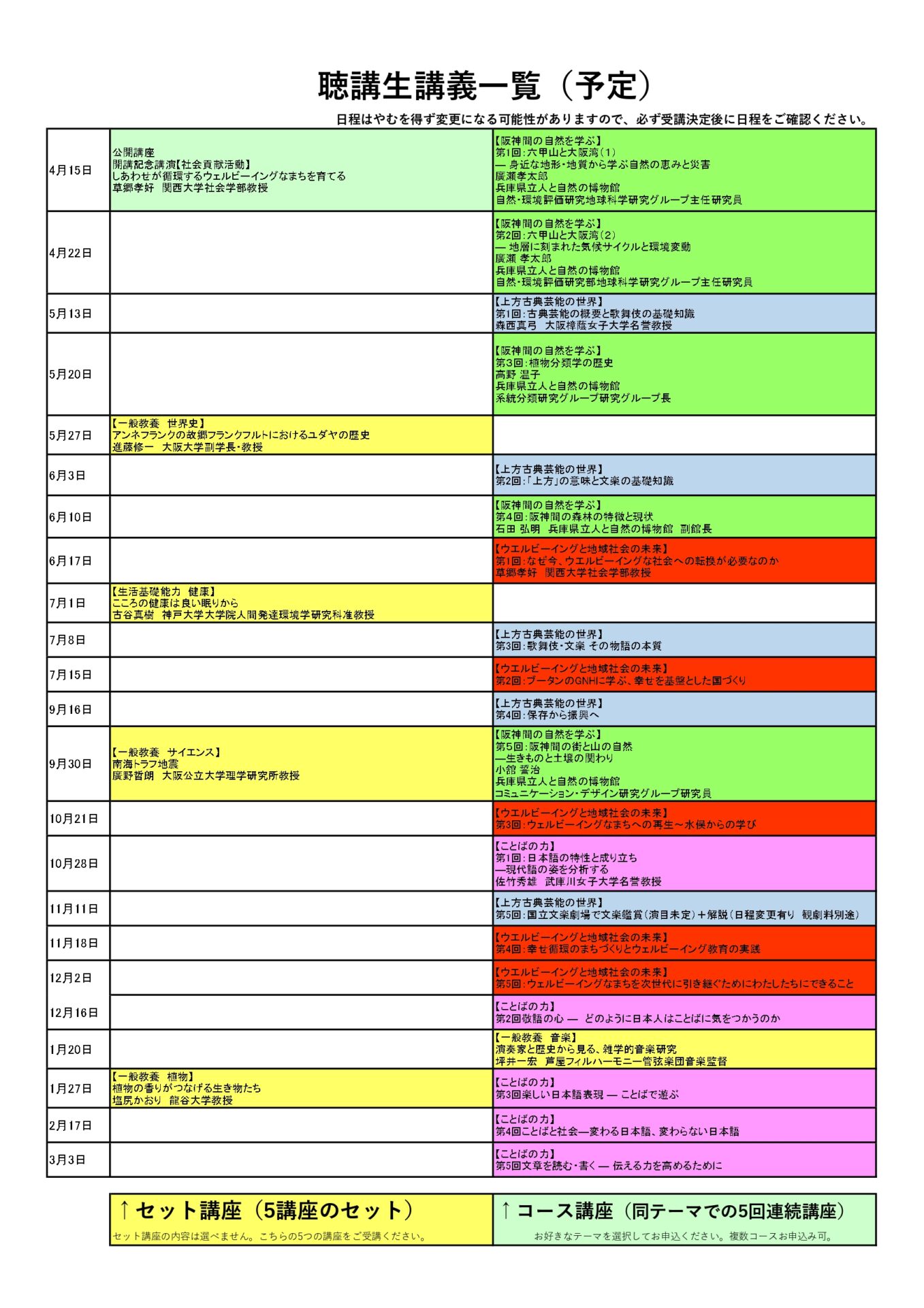 | 開催日 | 水曜日の聴講生講座開催日 |