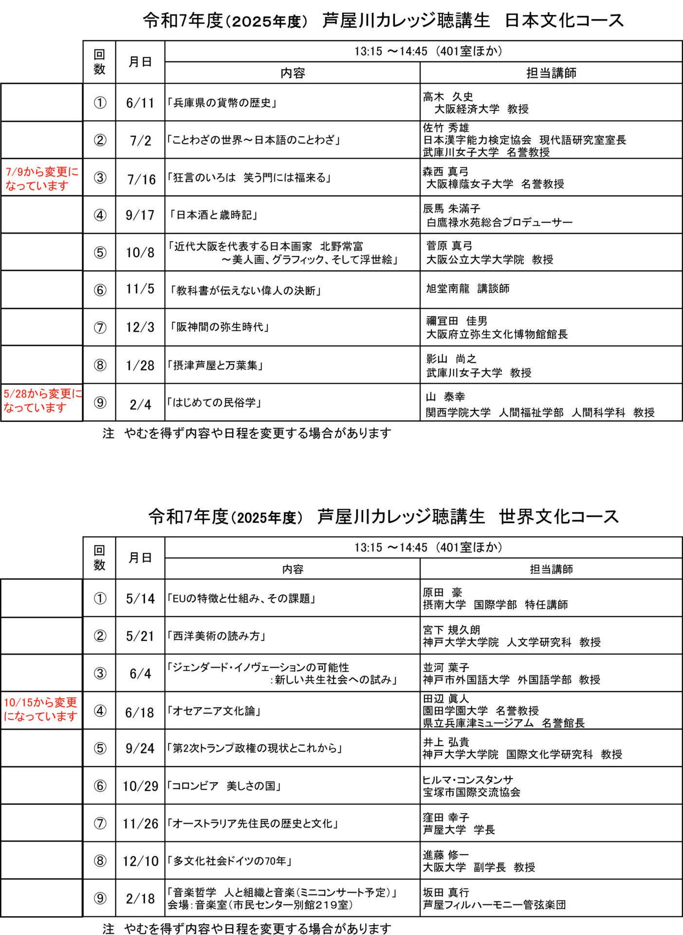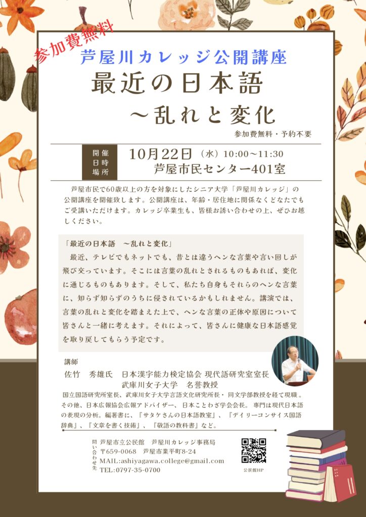 大きく変更を加えることで、学びの場がより活発で充実したものとなることを目指しています。芦屋川カレッジは、学ぶよろこびを分かち合い、仲間と共に成長できる場所です。これからも、皆さまと共に、学びの時間をもっとわくわくするひとときに育ててまいります。