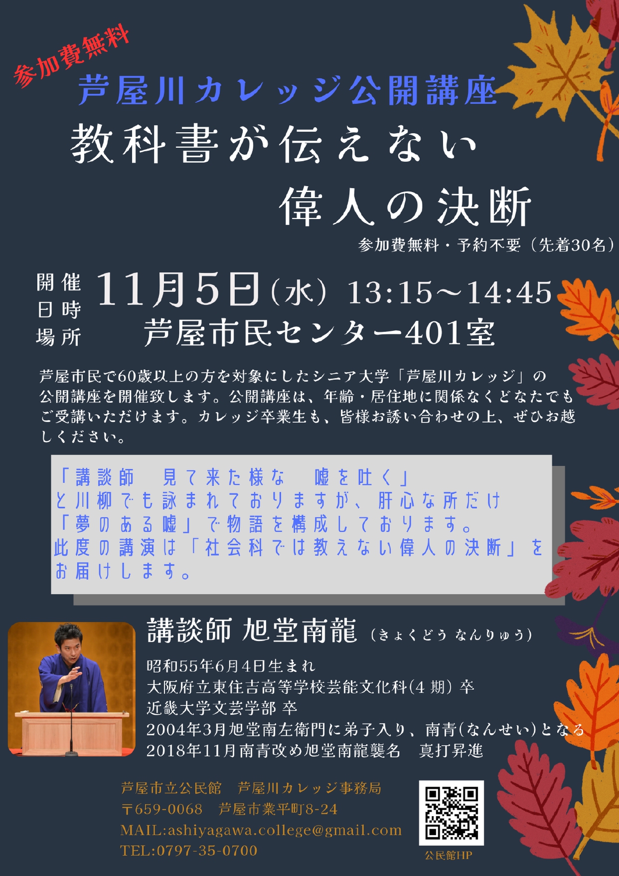 | 受講資格 | 芦屋市民で56歳以上の方。 |